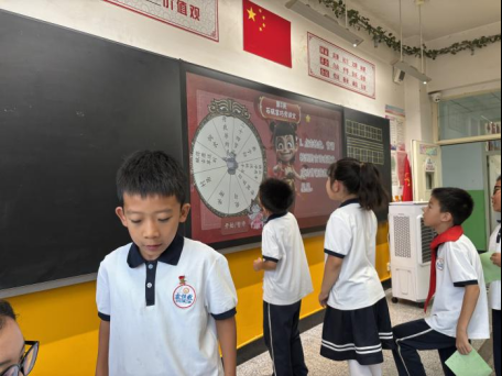 “哪吒鬧‘時’大闖關(guān)”可謂創(chuàng)意十足。同學們用手臂充當指針,“時針短,分針長,現(xiàn)在是3時15分!”他們一邊說著,一邊用手臂擺出相應的角度,形象又直觀地展現(xiàn)了對時間的認識。