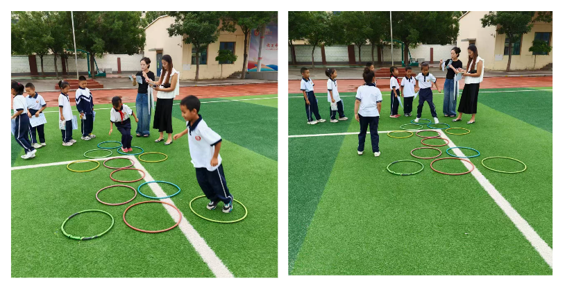 體育與健康測評則將操場化身為“運動森林”、“小松鼠過獨木橋”、“小青蛙跳荷葉”、“小猴子傳果子”、“小獵豹繞障礙”等趣味游戲,讓同學們在運動中鍛煉了平衡、爆發(fā)、靈敏等能力,也培養(yǎng)了團隊協(xié)作精神?!敖幼?!”“加油!”,操場上回蕩著同學們的歡聲笑語和互相鼓勵的聲音。