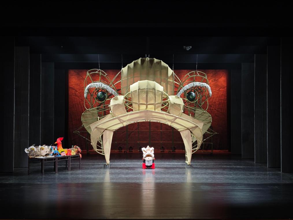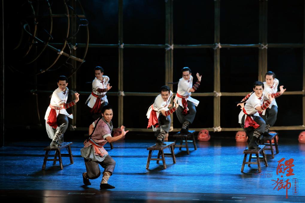 1月10日至11日,由廣州歌舞劇院創(chuàng)排的舞劇《醒·獅》在醒獅起源地廣東佛山巡演。18名男演員舞起9頭威風凜凜的醒獅,站上鼓面向前邁進。霎時,燈光熄滅,舞臺上出現(xiàn)了用竹片龍骨架搭建的巨型醒獅造型,它睜開雙眼,目光如炬,全場掌聲雷動、一片驚呼。